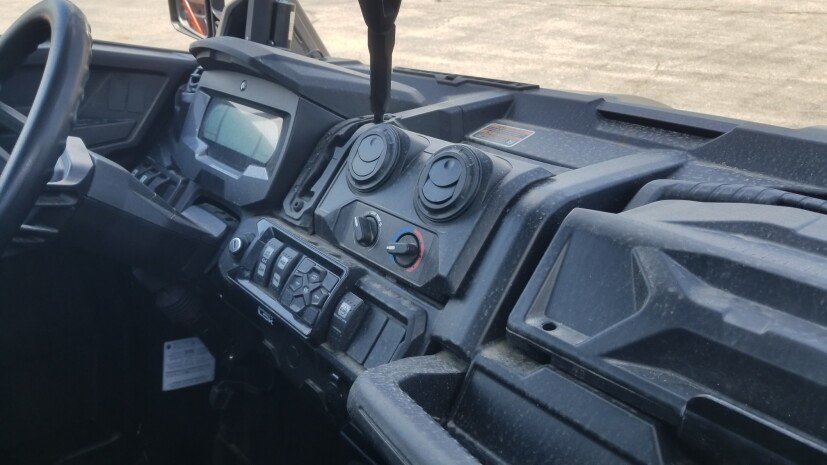 DEMO, AUDIO ROOF, HEATER, POWER FLIP WINDSHIELD, MUD TERRAIN KM3 30X10R14 TIRES,WIPER AND WASHER,GLASS REAR WINDOW,SIDE MIRRORS,SUPPORT LIGHT KIT, ROOF WIRING HARNESS,WINDOW HARNESS, LIGHT HARNESS, ROOF SEAL KIT. Engine Type: 82 hp / 69 lb-ft, Rotax 976 cc, V-twin, liquid cooled with strategically positioned engine air intake Displacement: 976cc Fuel System: Intelligent Throttle Control (iTC) with Electronic Fuel Injection (EFI) Front Suspension: Arched double A-arm with sway bar / 12 in. (25.4 cm) travel Front Brakes: Dual 220 mm disc brakes with hydraulic twin-piston calipers Front Tire: XPS Swamp Force 30 x 9 / 11 x 14 in. Rear Suspension: Arched TTA with external sway bar / 12 in. (25.4 cm) travel Rear Brakes: Dual 220 mm disc brakes with hydraulic twin-piston calipers Rear Tire: XPS Swamp Force 30 x 9 / 11 x 14 in. Dry Weight: 2,174 lb. (986 kg) Wheelbase: 115.5 in. (294 cm) Ground Clearance: 15 in. (38.1 cm) Fuel Capacity: 10.6 gal. (40 L) Box Capacity: 1,000 lb. (454 kg) / California only: 600 lb. (272.2 kg) Towing Capacity: 2,500 lb. (1134 kg) Transmission: PRO-TORQ CVT Transmission with Quick Response System (QRS), Electronic Drive Belt Protection, lower gearing ratio and high airflow ventilation with strategically positioned CVT air intake and exhaust, Extra-L / H / N / R / P Drive System: Selectable Turf Mode / 2WD / 4WD TRAIL / 4WD MUD with exclusive Smart-Lok technology. Smart-Lok was developed in conjunction with TEAM Industries, a market leader in the drive train industry Colors: Liquid Titanium / Magma Red.